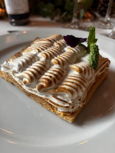 El final dulce llega con una irresistible tarta de ruibarbo con nata reducida, el broche perfecto para una noche de otoño en Madrid.