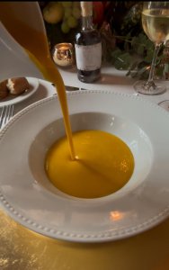 Arranca con un aperitivo Ritz, seguido de una delicada sopa de calabaza con cardamomo, queso fresco y rocas de pan de maíz, una entrada aromática que anticipa los sabores reconfortantes propios de esta celebración.