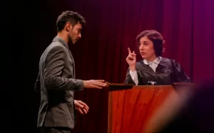El público ha sido llamado para formar parte del jurado y tendrá que escuchar los testimonios, analizar pruebas y sopesar argumentos. Además, tendrá que tomar decisiones y decidir al final, el final de la historia.
