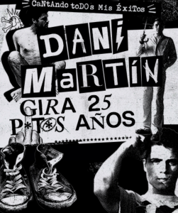 La ‘Gira 25 p*t*s años’ de Dani Martín es una celebración de su carrera, cantando todos sus éxitos y haciendo un completo repaso por los temas más icónicos de estos 25 años: desde su etapa al frente de la histórica banda El canto del loco hasta su presente, con quince años de carrera en solitario. Un concierto donde te sabrás todas las canciones.