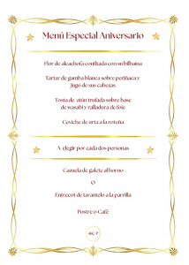 Con un precio de 46 euros por persona, el menú aniversario recorre algunos de los platos más representativos de esta nueva etapa del restaurante, como el tartar de gamba blanca, la tosta de atún trufada con base de wasabi y ralladura de foie, la cazuela de galete al horno o el entrecot de tarantelo de atún a la parrilla, uno de los cortes más apreciados del despiece.