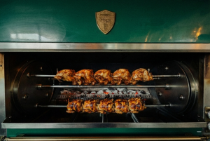 Entre las elaboraciones destaca el pollo asado a las brasas del horno Josper, que condensa la esencia de Del Amo, tradición cocinada con medios actuales, sello Barbillón y un acabado impecable. Pollos camperos marinados en mantequilla y hierbas durante 24h -sin nada de sal y asombrosamente sabrosos-. Las brasas del Josper aportan el toque diferenciador en un plato que muchos reconocen como cotidiano, pero que aquí se eleva desde su simplicidad.
