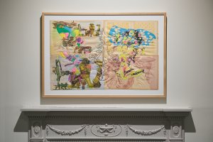 La muestra se encuentran creaciones recientes del artista junto a piezas procedentes de etapas anteriores. Esta veintena de obras activan un campo de resonancias entre la biografía del artista, la memoria del palacio y la experiencia del visitante.
