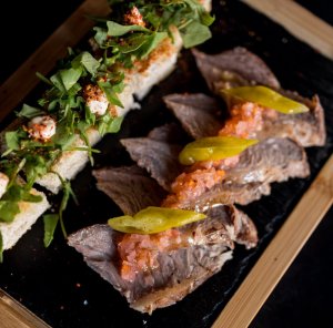 - Esto da paso al pastrami de parpatana de atún, seguido de la coca de chantarella, gallo de mos y tetilla
