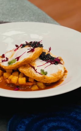 Los postres mantienen el nivel, con la torrija caramelizada, la tarta entre algodones o el mini-cake 70 %, perfectos para cerrar la velada.