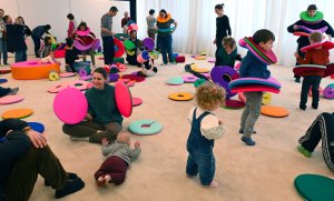Otra instalación ocupará la Sala de Cristal durante once días, hasta el 4 de enero. Les tutomouves, una creación de los artistas franceses Clédat y Petitpierre, ofrece a niños y adultos la oportunidad de bailar usando las más de 240 figuras geométricas de colores de espuma y licra distribuidas por el suelo del espacio siguiendo una docena de videotutoriales de divertidos bailes. La instalación está diseñada como un espacio de juego, descanso, experimentación y baile, donde todo es suave y apacible.