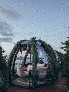 Los iglús de invierno de Picos Pardos Sky Lounge del Bless Hotel Madrid están inspirados en los paisajes nevados alpinos, muy bien climatizados ofrecen un refugio cálido, elegante y muy acogedor, decorado con pieles, mantas y luces suaves que invitan a quedarse horas.