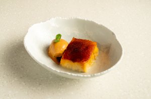 5. Tortilla de bacalao al pil pil y torrija caramelizada